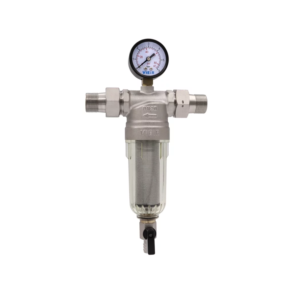 Фильтр с манометром для холодной воды никелированный