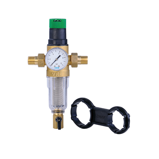 Фильтр представляет собой комбинацию промывного фильтра с клапаном понижения давления. Встроенный в корпус клапан понижения давления позволяет защитить магистрали и устройства водопотребления от нежелательных колебаний давления, а также уменьшить расход воды.
