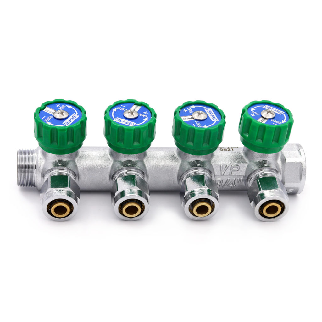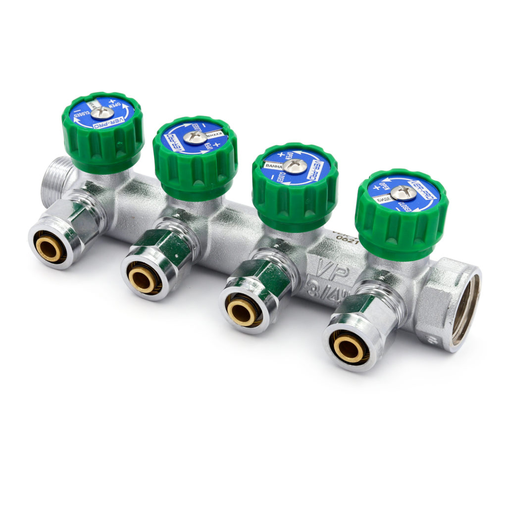 Регулирующие коллекторы с запорно-регулирующими вентилями позволяют контролировать распределение и напор воды с высокой точностью различных контуров (баня, санузел, гостиная, кухня и т.д.), а также сделать работу этих контуров автономной.