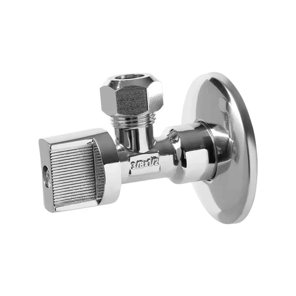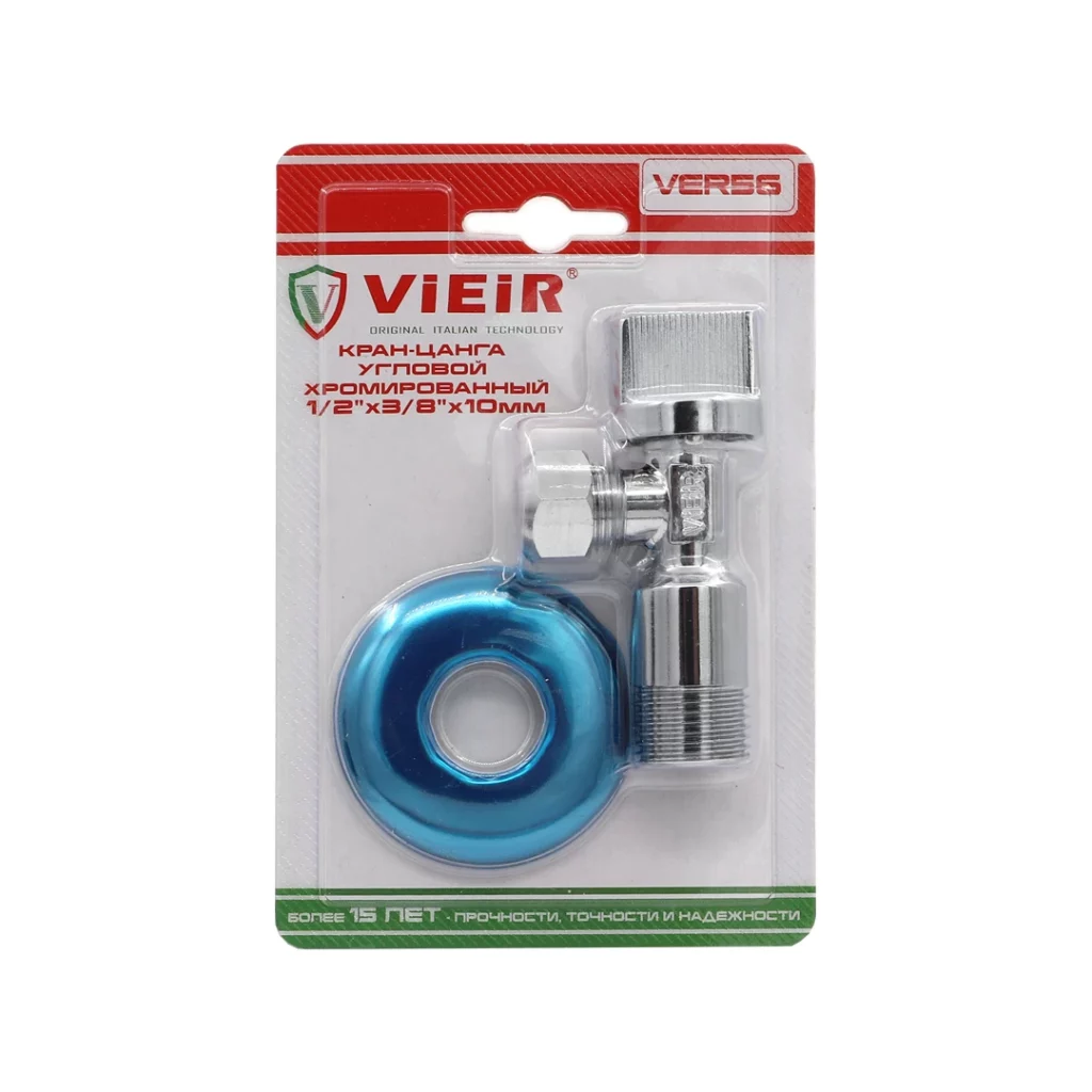 Вентиль-цанга угловой с металлической ручкой, хром (в блистере)
