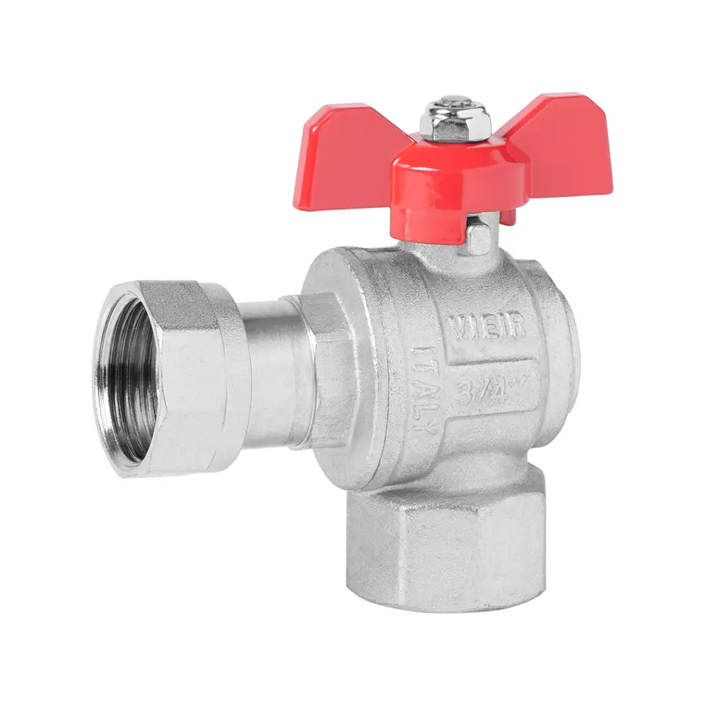Кран шаровой угловой с накидной гайкой применяется в качестве запорной арматуры на трубопроводах систем питьевого и хозяйственно-питьевого назначения, горячего водоснабжения, отопления, сжатого воздуха, жидких углеводородов, а также на технологических трубопроводах, транспортирующих жидкости, не агрессивные к материалам крана. Шаровые краны VIEIR с накидной гайкой обеспечивают разбивку трубопровода на отсекаемые ремонтные участки, накидная гайка позволяет монтировать и демонтировать участок трубопровода за краном без демонтажа подводящего трубопровода.
