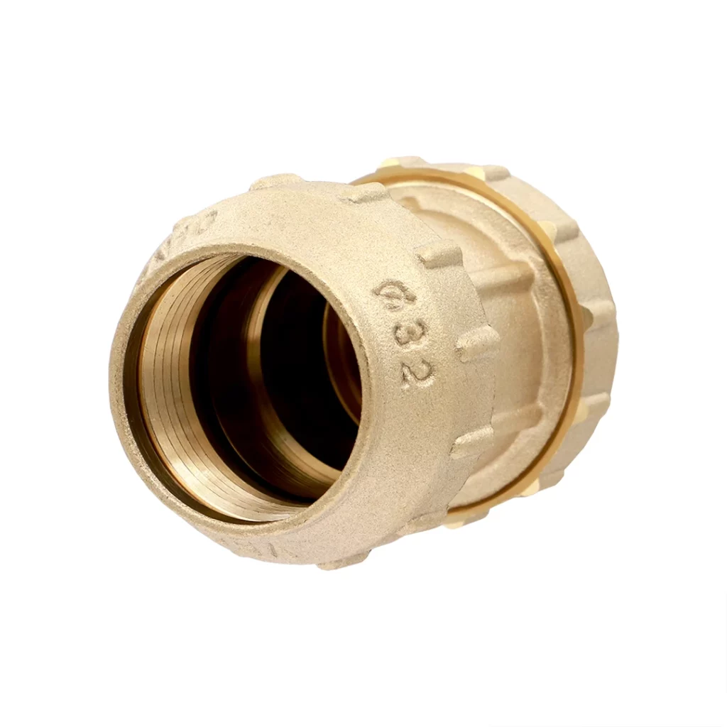 Латунные фитинги могут обеспечить герметическое соединение ПНД трубы, диаметром 32 мм и толщиной стенок 2,4 мм, с гарантированным отсутствием протечек. Это обусловлено тем, что обжимное кольцо (оно также сделано из латуни) имеет на внутренней поверхности подобие резьбы, которая при закручивании гайки вдавливается в структуру полиэтилена. Таким образом, когда при внешнем физическом воздействии происходит растяжение (деформация) трубы, соединение не будет нарушено.