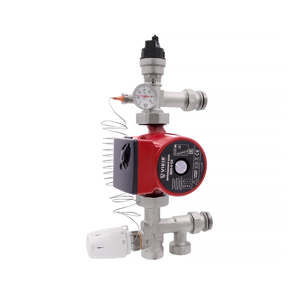 Насосно-смесительный узел ViEiR VR232 предназначен для регулирования и автоматического поддержания заданной температуры теплоносителя в системах водяного теплого пола, теплых стен,