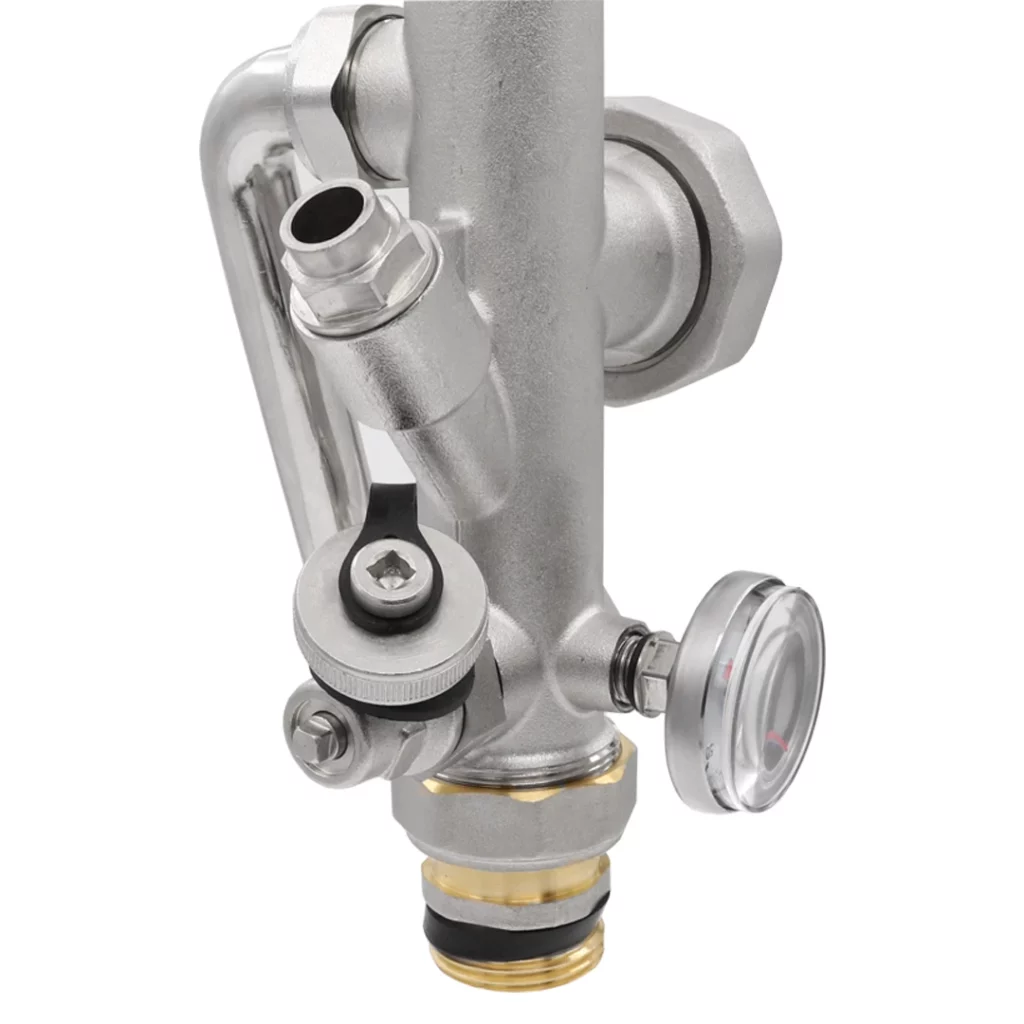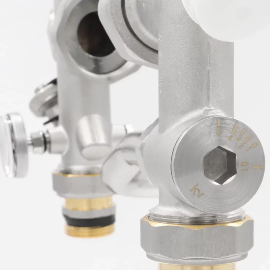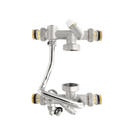 Узел может быть установлен как слева, так и справа от обслуживаемого коллекторного блока. При этом горизонтальное смещение присоединительных патрубков к коллекторному блоку обеспечивается за счет наклона узла на 9° от вертикальной оси.