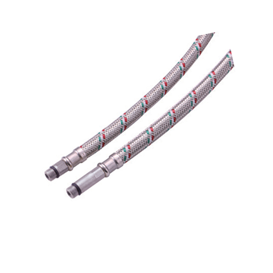 Подводка армирована оплеткой из усиленной нержавеющей стали AISI 304. Армирование шланга оплеткой из нержавеющей стали AISI 304 обеспечивает функционирование изделия, без протечек при давлении 15-20 атмосфер и температуре до 90º С, увеличивает прочность шланга на разрыв до 120 атмосфер. Благодаря свойствам нержавеющей стали гибкая подводка длительное время не утратит своего эстетического вида.