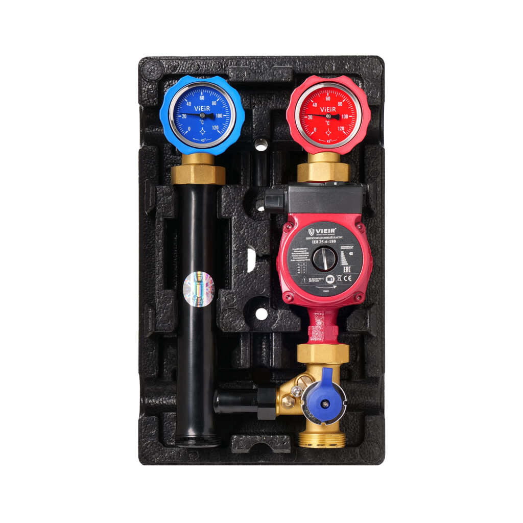 Насосная группа это группа приборов, способная обеспечить бесперебойную циркуляцию теплоносителя в системе обогрева с целью поддержания заданной температуры.
