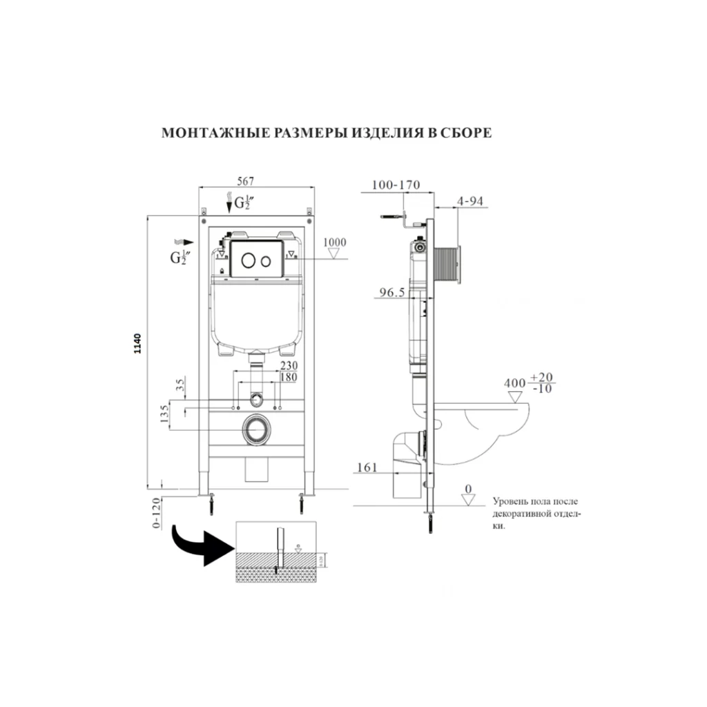 Изделие предназначено для скрытого монтажа и служит для крепления подвесного унитаза