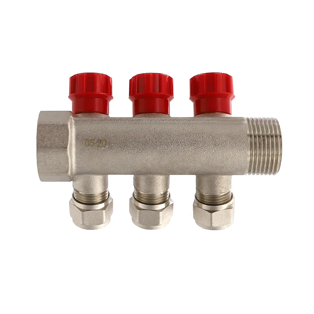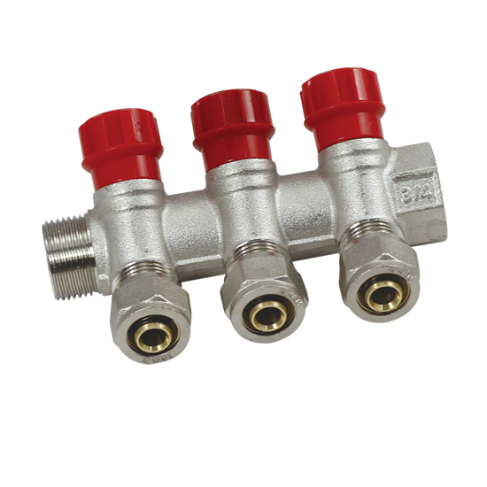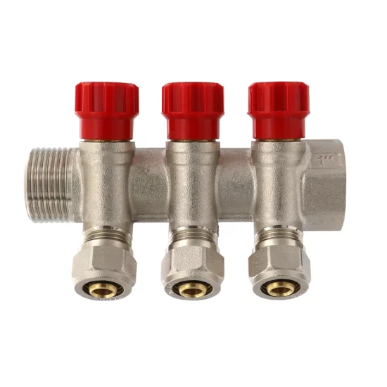 Регулирующий коллектор с вентилями и цангами 3 выхода /красный