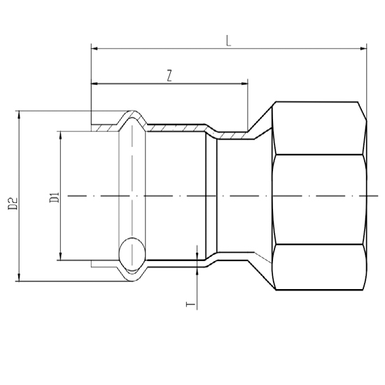 Соединитель прямой с переходом на внутреннюю резьбу из нержавеющей стали (P-G), Ver-pro