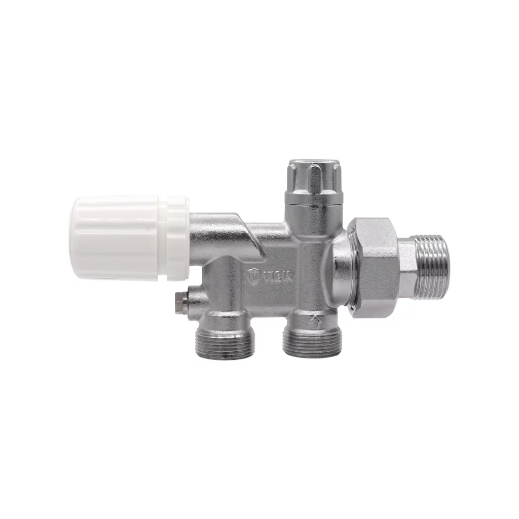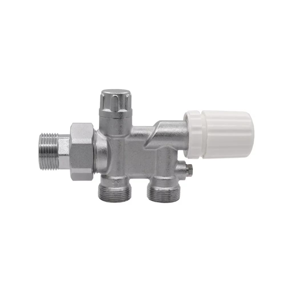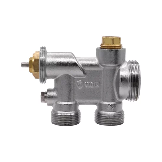 Термостатический узел регулировки с запорно-балансировочными клапанами применяется для нижнего бокового подключения отопительных приборов систем водяного отопления при расположении подводящих трубопроводов снизу радиатора (в полу, в плинтусе, над плинтусом).