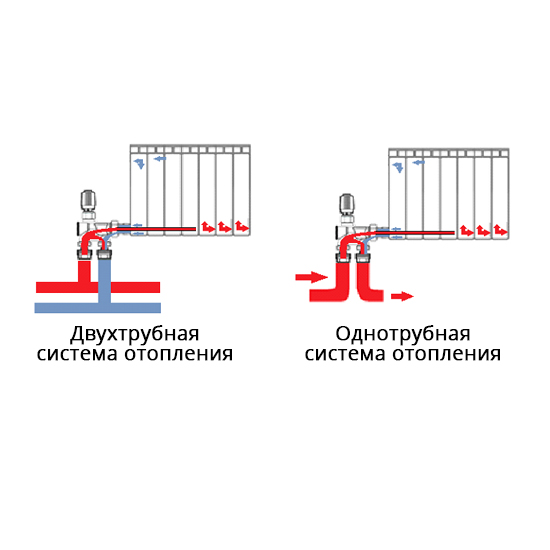 Использование данного комплекта подходит одновременно для двухтрубной системы отопления и однотрубной.